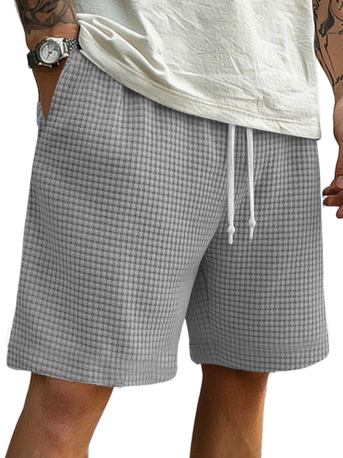 Men's Simple Solid Color Waffle Texture Casual Shorts
